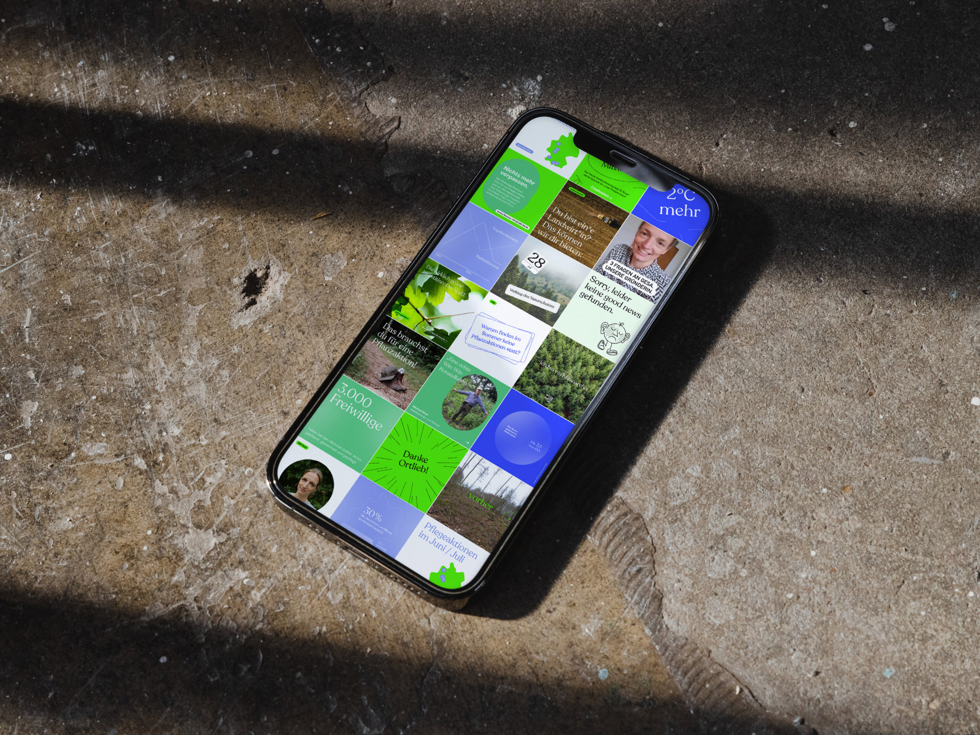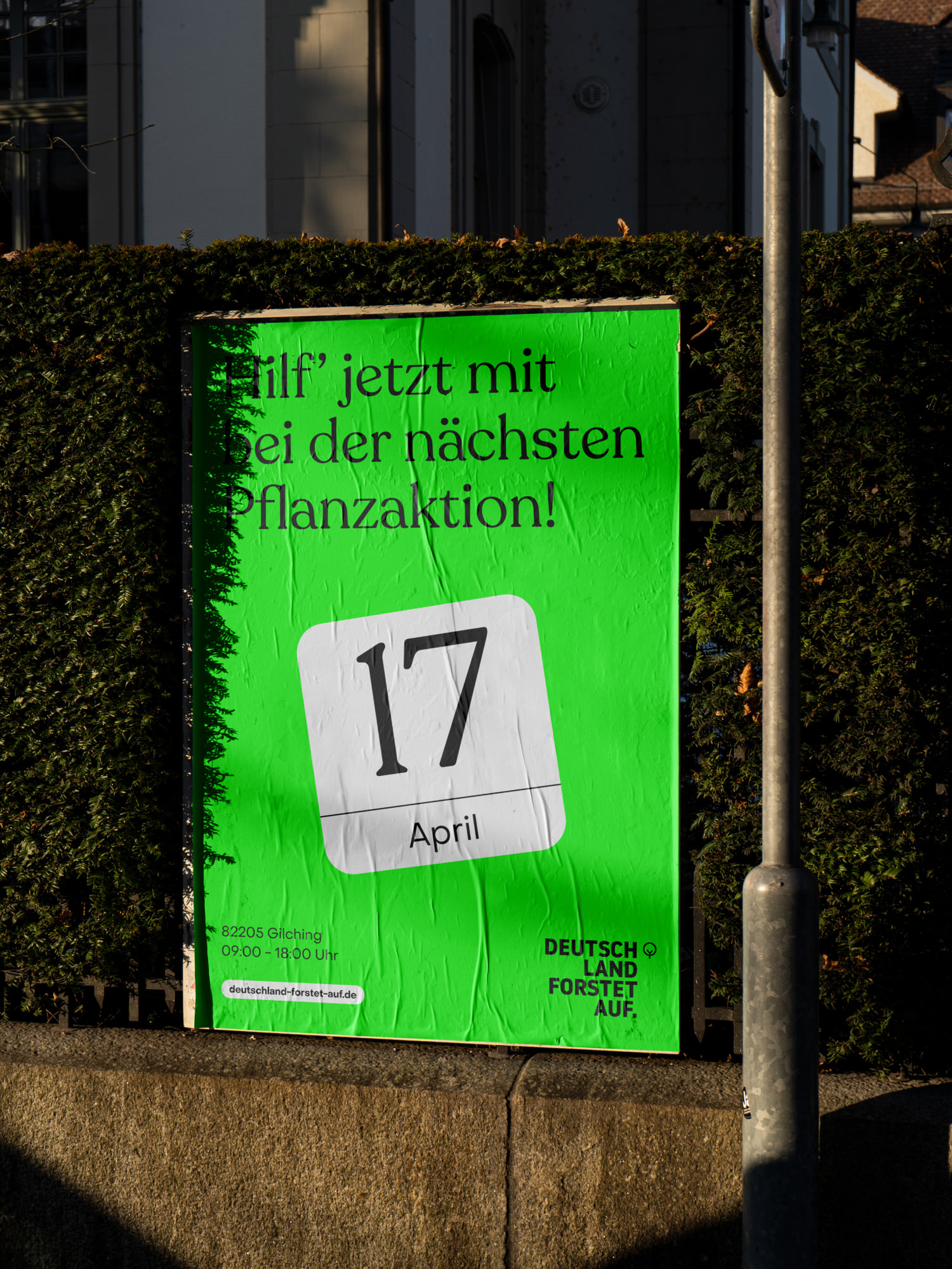 Deutschland forstet auf ist eine Plattform, die Forstleute, Waldbesitzende und Landwirt*innen mit freiwilligen Helfer*innen und Unternehmen vernetzt. Im Zuge eines Re-Designs für das soziale Netzwerk Instagram entstand ein visuell wie inhaltlich neu gedachter Auftritt. Man findet eine Mischung aus allgemeinen Informationen zum Thema Wald und Klimaschutz, Aufklärung über Arbeitsfelder von DFA sowie Animation zum Engagement. Durch den Einsatz einer akzentuierten Farbigkeit und einer spannungsreichen Schriftmischung zeigt sich der Instagram Account in einem frischen und zeitgemäßen Look and Feel.