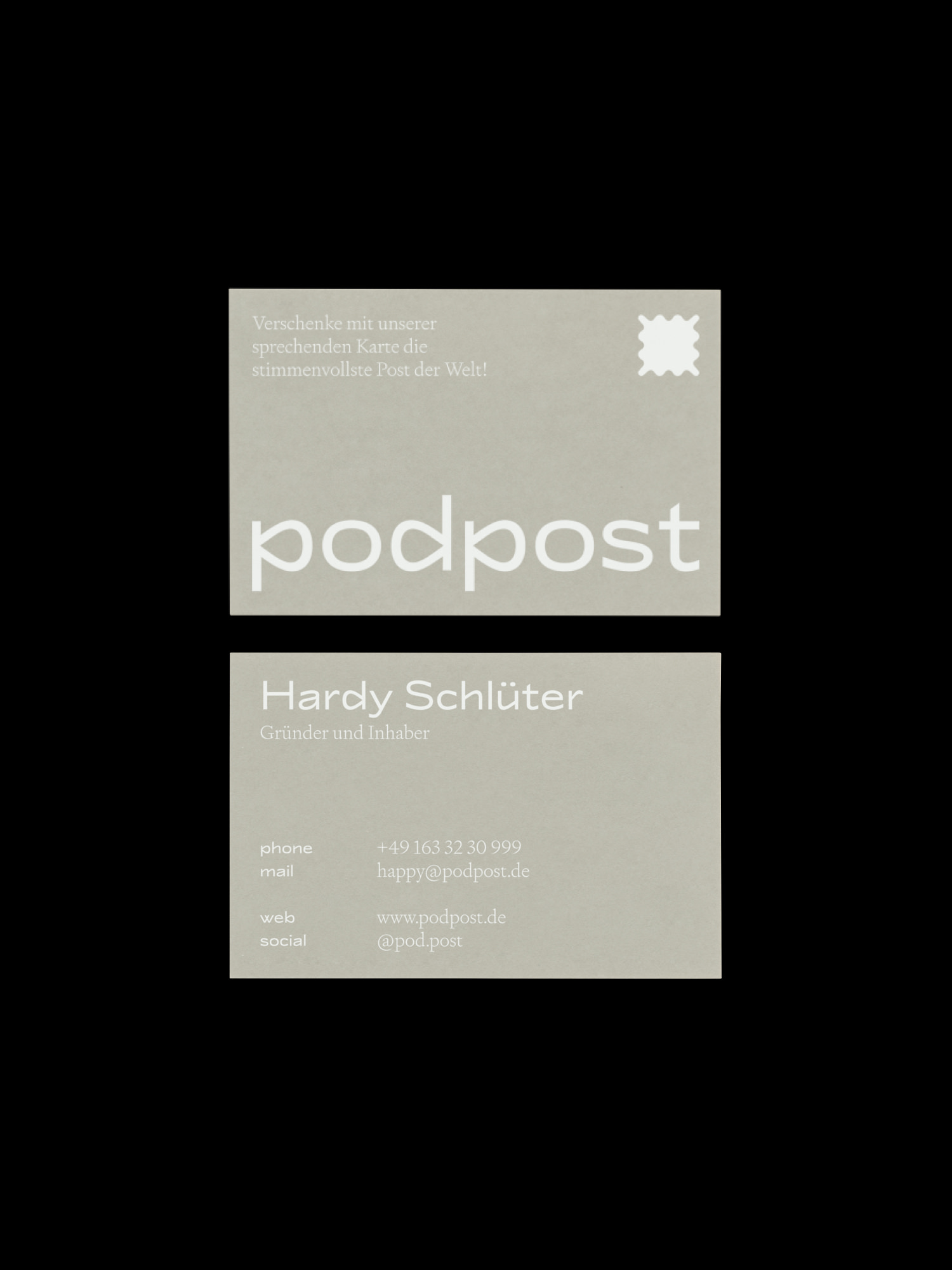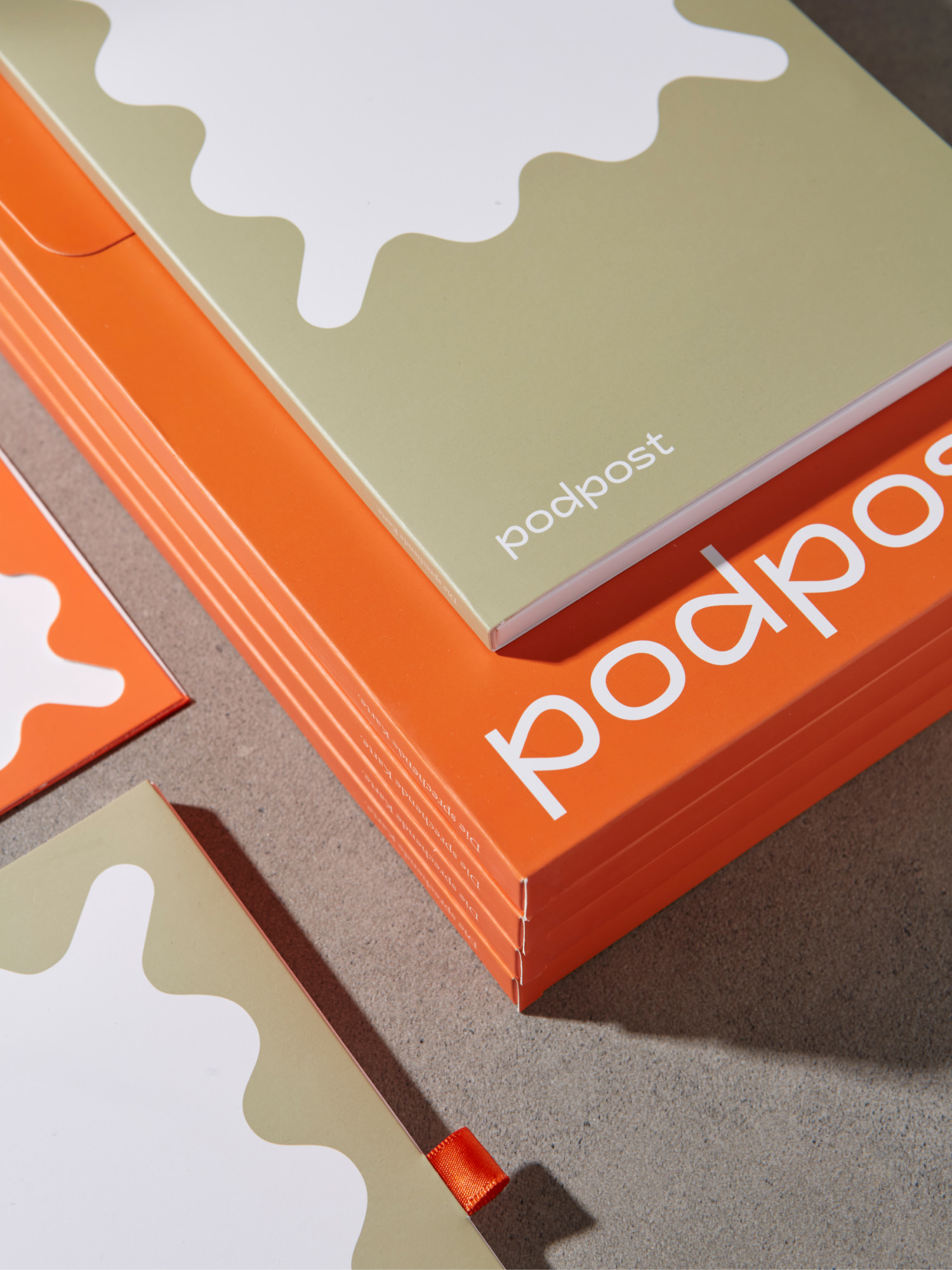 Die üblichen Sound-Geschenkkarten kennt man. Doch Podpost bringt die persönliche Note mit. Moderne Technik trifft auf die klassische Idee des Verschenkens. Für das Start-Up sind diverse digitale wie analoge Medien entstanden. Im Mittelpunkt des Corporate Designs steht die Primärfarbe Orange und der charakteristische Schriftzug. In Zusammenarbeit mit dem Duo Jacob Reischel aus Berlin sind dokumentarische Fotografien entstanden, die auf Social Media und der Website zum Einsatz kommen.