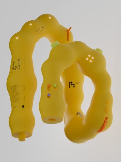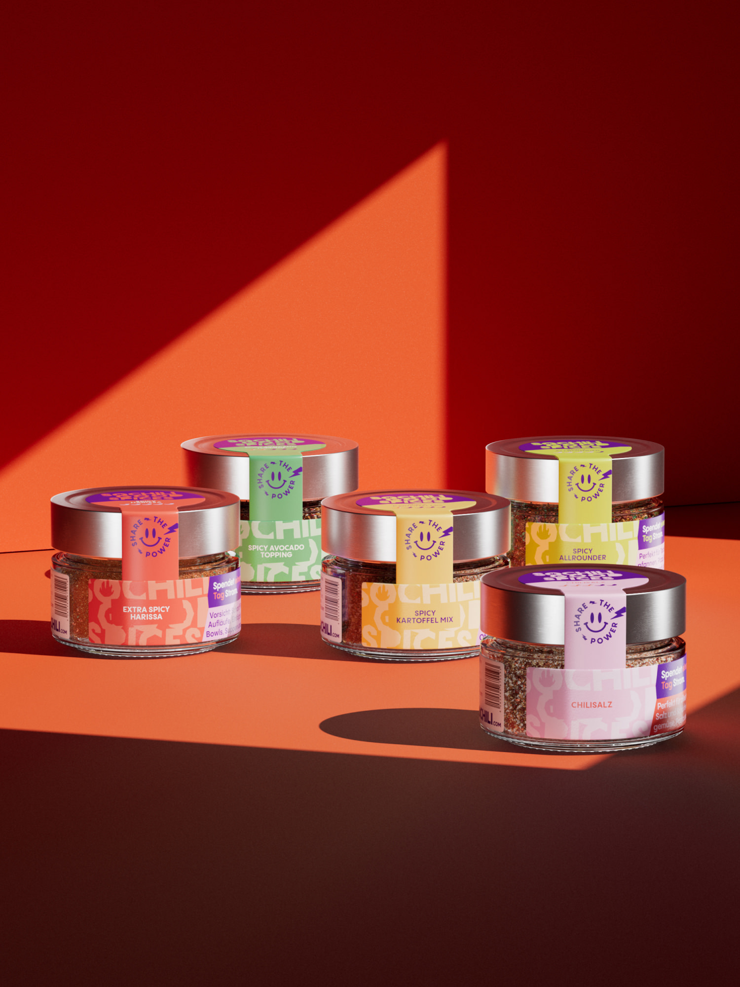 Die 3D-Renderings inszenieren die Produkte mit präzisen Lichtstrahlen und harten Schatten, wodurch eine moderne, grafische Ästhetik entsteht. Farbige Kontraste setzen Akzente und rücken die Marke sowie ihre Mission eindrucksvoll in den Fokus.